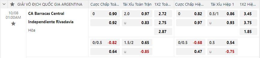 Soi kèo hiệp 1 Barracas Central vs Independiente Rivadavia