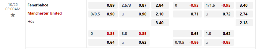 Soi kèo hiệp 1 Fenerbahce vs Manchester United