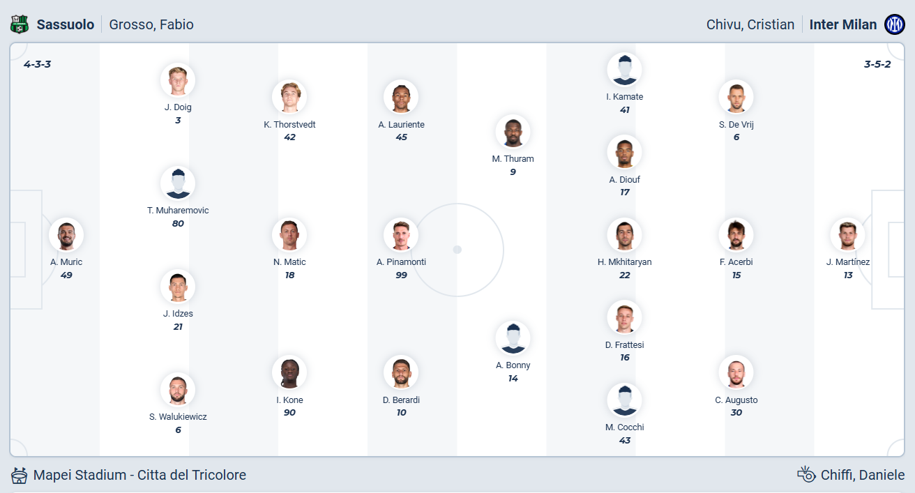 Dự đoán tỉ số trận đấu: Sassuolo 0 – 2 Inter (Chọn Inter và Xỉu trận)