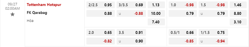Tỷ lệ kèo Tottenham Hotspur vs Qarabag